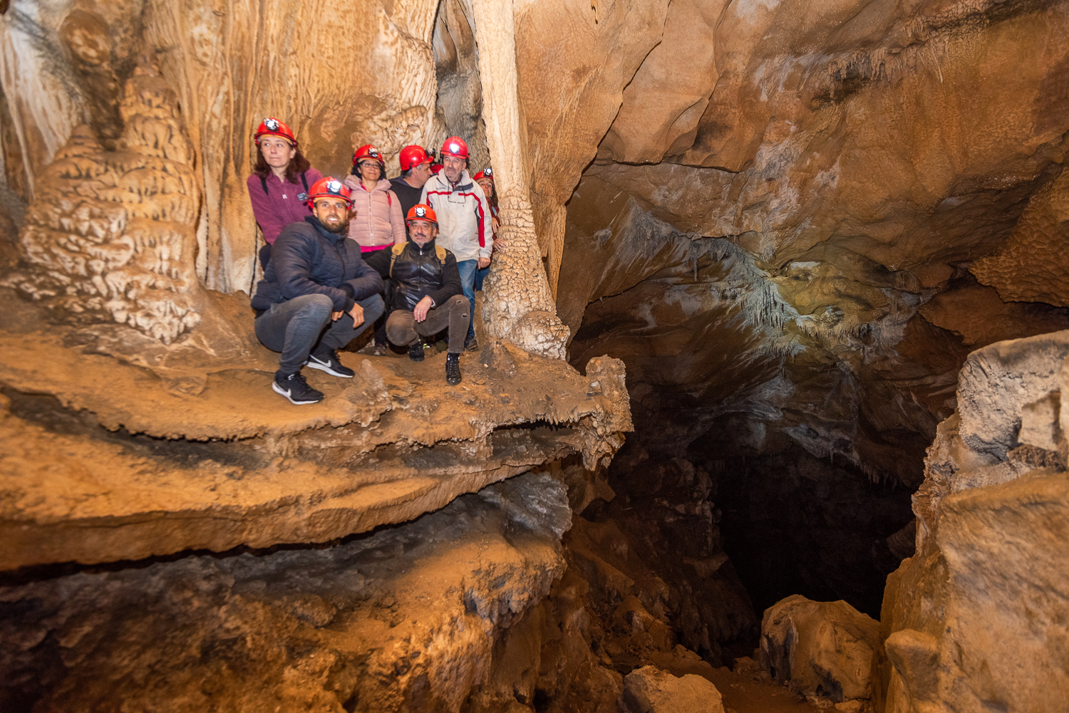 Puedes visitar cueva huerta en dos modalidades, bien con la visita de pasarela o los mas aventureros a realizando espeleología: